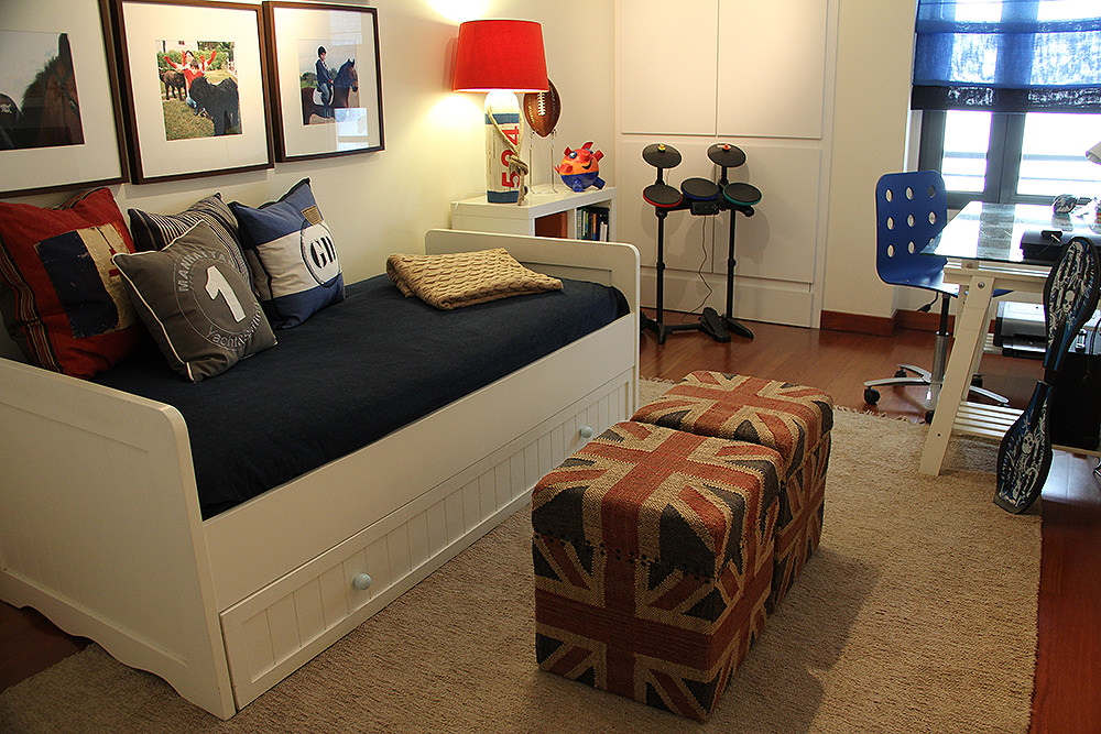 Foi repensada a distribuição e implantação do mobiliário em geral, com especial incidência nas áreas sociais e nos dois quartos das crianças.