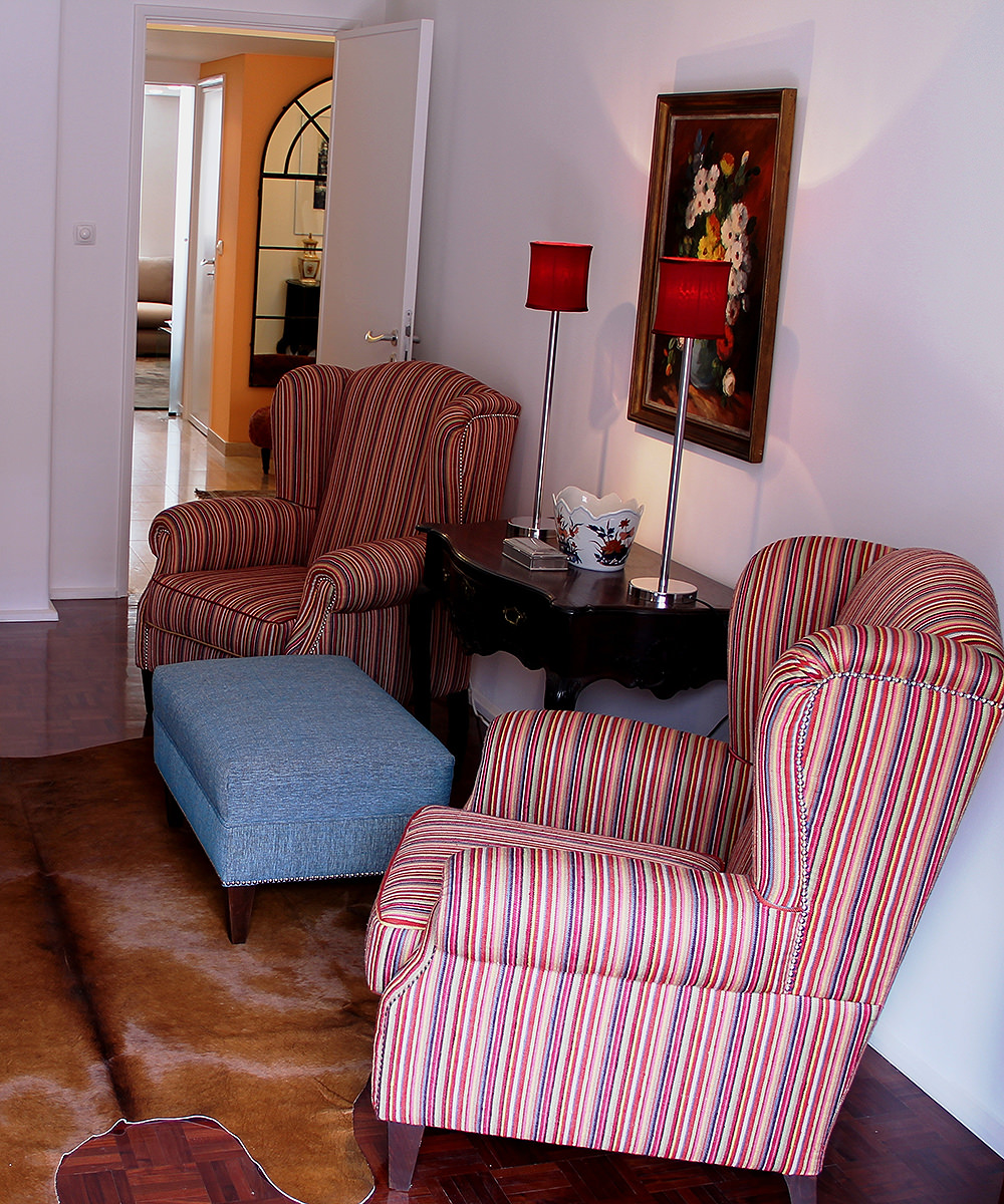 Foi estudada a distribuição e implantação do mobiliário, para que todos os compartimentos ficassem funcionais e mais acolhedores. Inúmeras peças foram restauradas, sendo estofadas com têxteis de cores quentes e alegres. Na sala comum, junto à zona de refeições, foi utilizado um papel de parede de padrão floral com cores fortes, ajudando a dar dinâmica e realce à parede, para atenuar a presença de um aparador de madeira escuro existente.